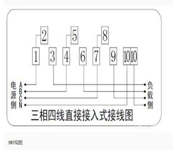 三相預(yù)付費(fèi)電表直接式的接線比較簡單,編號從1到10,有的朋友只看到底部的7個(gè)接線柱,其實(shí)還有2、5、8三個(gè)接線柱,只不過這三個(gè)接線柱和147用連接片短接了,所以不需要再接線。這種直接式的三相四線電表的接線順序是:147接三相電源的進(jìn)線,369接出線,最后的10接進(jìn)出的零線。