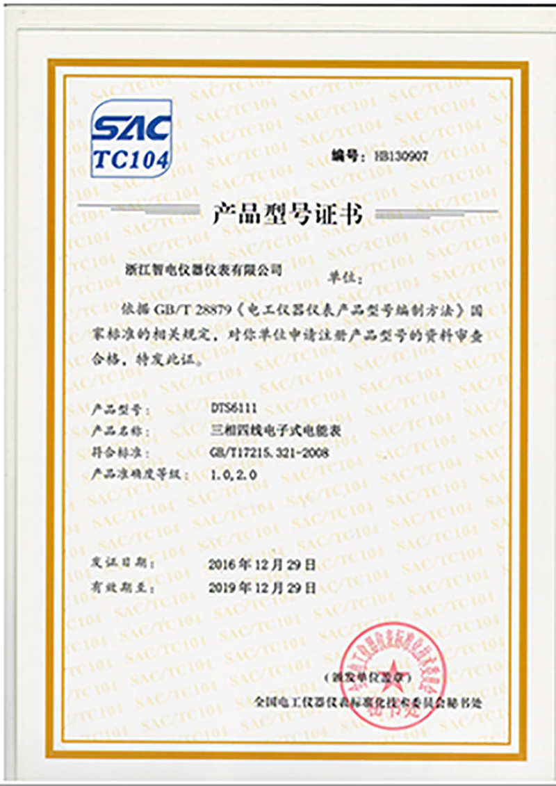 DTS6111產(chǎn)品型號(hào)證書
