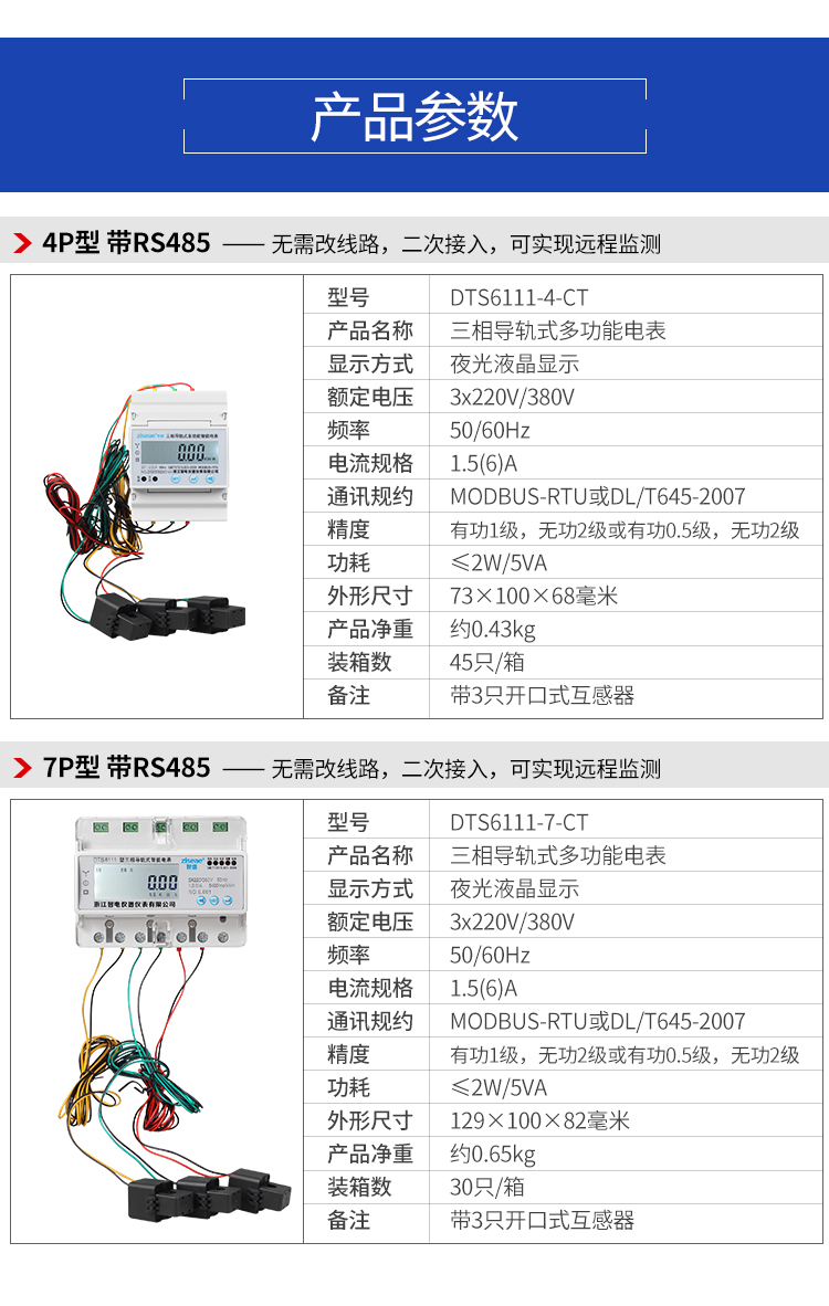 DTS6111、DSS6111型三相導軌式二次互感遠程監測電能表(4P)