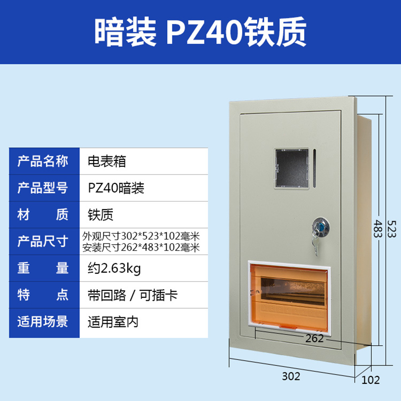 我公司生產(chǎn)的PZ40電表箱采用0.5-1mm厚冷軋鋼板和進口PC高透視窗,并帶有門鎖,安全防盜,大氣美觀。可安裝各類電能表和C45、空氣開關(guān)、斷路器閘刀等,廣泛用于家庭、公寓、學(xué)校、工廠等場所。